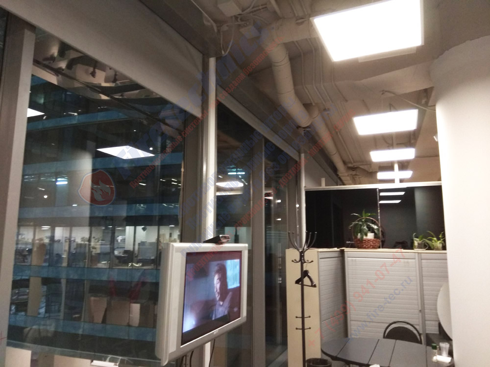 При получении сигнала «Пожар» от пожарной сигнализации активируется система управления, которая приводит в движение механизм опускания защитного экрана. Он полностью перекрывает проём, блокируя дальнейшее распространение огня, дыма, что обеспечивает безопасную эвакуацию людей в установленные законом сроки.